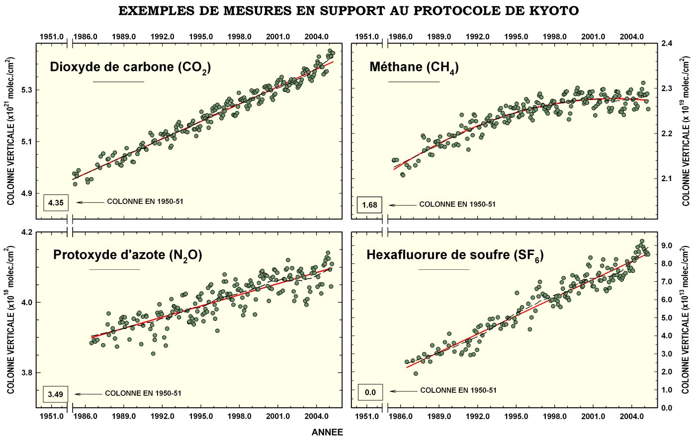 ciblés par Kyoto, les abondances verticales mesurées
