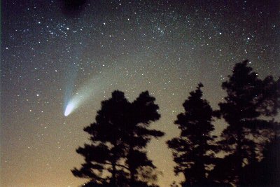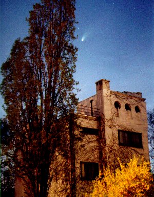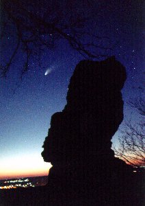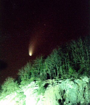 Comet Hale-Bopp above the Renissart cliff (flood-lighted, alas for astronomy),