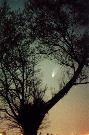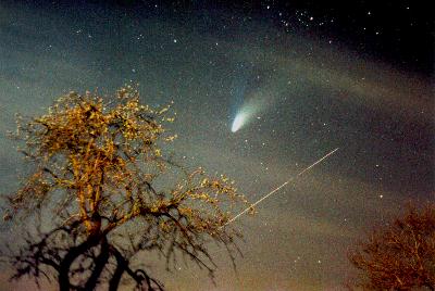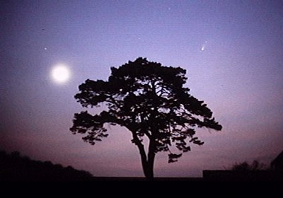 The Moon and the comet Hale-Bopp (in a cloudy sky !).