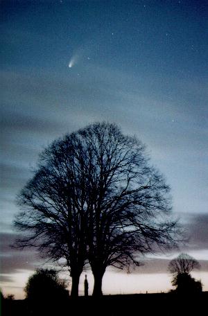 Comet Hale-Bopp and the Moon at sunset, from Fronville (Hotton), on April