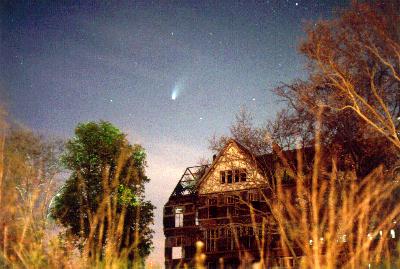 The Hale-Bopp comet above an old convent, at Cointe (Liège).